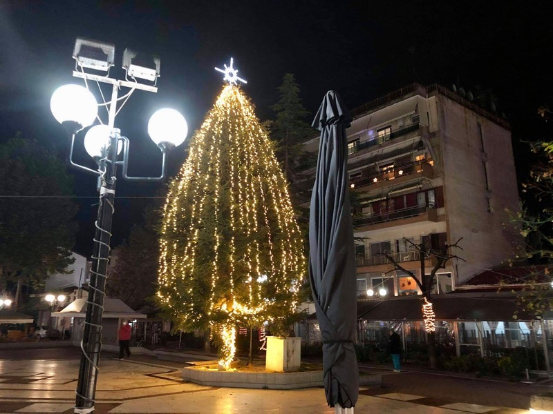 Το Χριστουγεννιάτικο Δέντρο της Κεντρικής Πλατείας του Τυρνάβου στολισμένο