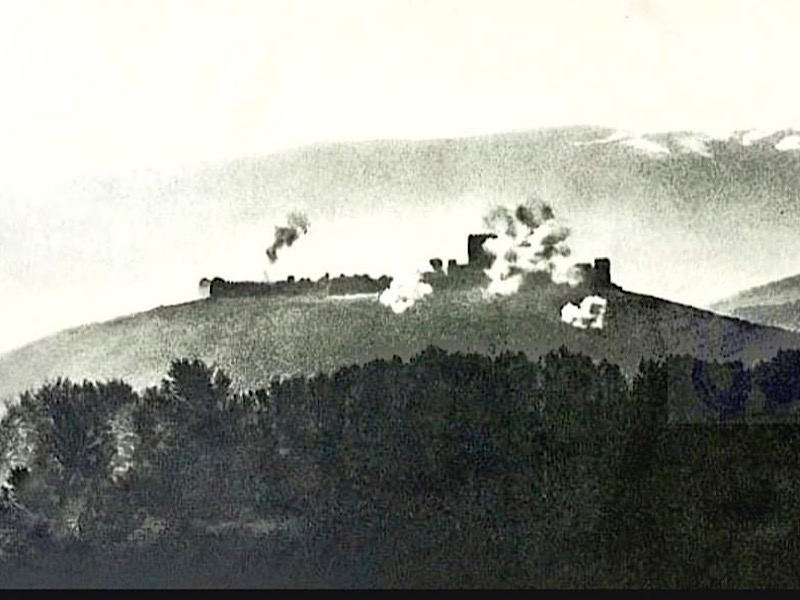 Το Κάστρο στις φλόγες την στιγμή του βομβαρδισμού από το γερμανικό πυροβολικό