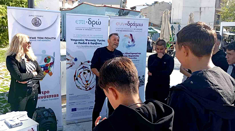 Στο πλαίσιο των Σχεδίων Δράσης «1ο ΕΠΑΛ Τυρνάβου – ένα υποστηρικτικό και συμπεριληπτικό σχολείο» και «1ο ΕΠΑΛ Τυρνάβου – αναπόσπαστο κομμάτι της τοπικής κοινωνίας» τα οποία στοχεύουν στη βελτίωση των σχέσεων των μαθητών, αλλά και στην εξωστρέφεια του σχολείου, αντιπροσωπεία μαθητών επισκέφθηκε το Περίπτερο του «Κέντρου Κοινότητας Τυρνάβου και του Κέντρου Κοινότητας με παράρτημα Ρομά», το οποίο στήθηκε στην κεντρική πλατεία σε συνεργασία με την Κινητή Μονάδα Ψυχικής Υγείας Ενηλίκων Λάρισας «Συν + δράμω» και την Κινητή Μονάδα Ψυχικής Υγείας Παιδιών και Εφήβων «Επι·δρώ» του νομού Λάρισας.