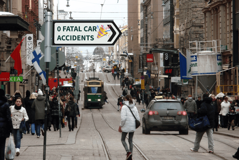 Αν θέλουμε να εξηγήσουμε τη φινλανδική επιτυχία, πρέπει πρωτίστως να ανατρέξουμε στον περιορισμό του ορίου ταχύτητας σύμφωνα με τον μηχανικό κυκλοφορίας στην Υπηρεσία Αστικού Περιβάλλοντος της πόλης, Ρόνι Ουτριάινεν. Η μείωση της ταχύτητας πρόσκρουσης ενός αυτοκινήτου από 40 σε 30 χλμ. την ώρα στις κατοικημένες περιοχές και το κέντρο του Ελσίνκι έχει ως αποτέλεσμα τη μείωση των πιθανοτήτων σύγκρουσης με πεζούς και θανάτου των τελευταίων.