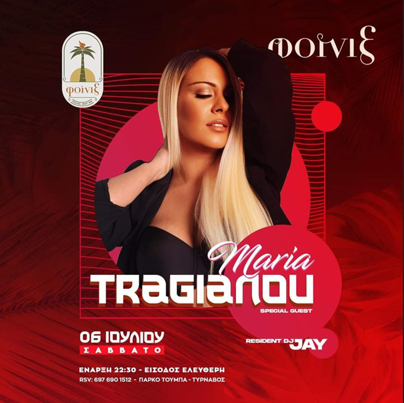 Το Σάββατο 6 Ιουλίου το Cocktail Night Bar Φοίνιξ στον Τύρναβο υποδέχεται την εντυπωσιακή Dj Μαρία Τραγιανού.
