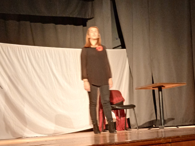 Στην εκδήλωση συμμετείχε και η Βασιλική Φαρδέλα, μέλος του θεατρικού ομίλου του ΓΕΛ Τυρνάβου η οποία παρουσίασε τον Μονόλογο της Περυ Καραμούζη για την κακοποίηση των γυναικών στον Τηλεμαραθώνιο Αγάπης.