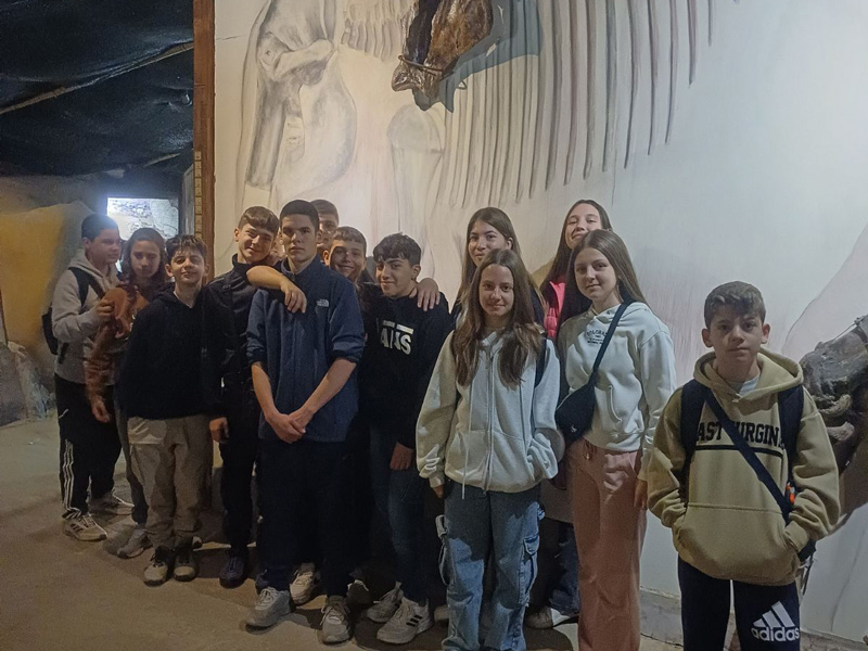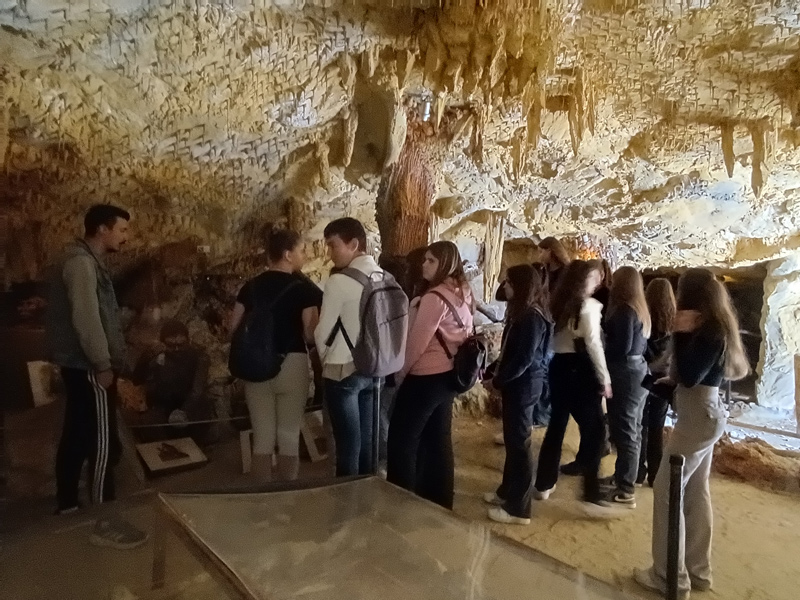 Στη συνέχεια οι μαθητές εισήλθαν στο Σπήλαιο της εξέλιξης ένα ομοίωμα πραγματικού σπηλαίου όπου ενημερώθηκαν για την ζωή και εξέλιξη του ανθρώπινου είδους μέσα από θεματικές φιγούρες των homo sapiens, homo erectus κ.α.