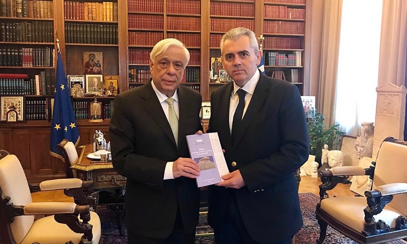 Φωτ. αρχείου: Ο Μάξιμος Χαρακόπουλος επιδίδει στον τότε Πρόεδρο της Δημοκρατίας Προκόπιο Παυλόπουλο την Έκθεση της Διακομματικής Επιτροπής της Βουλής για το Δημογραφικό.