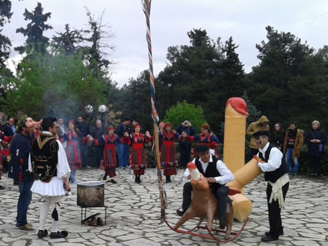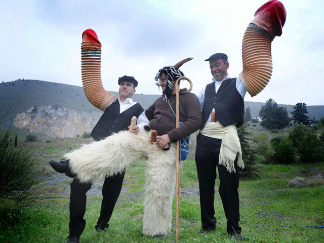 Οι φαλλοί κατέχουν κυρίαρχη θέση σ’όλη την εκδήλωση που κρατούνται με τα χέρια σαν είδος σκήπτρου, ή φέρονταν δεμένα σε όρθια θέση στο μέτωπο της κεφαλής του συμμετέχοντος