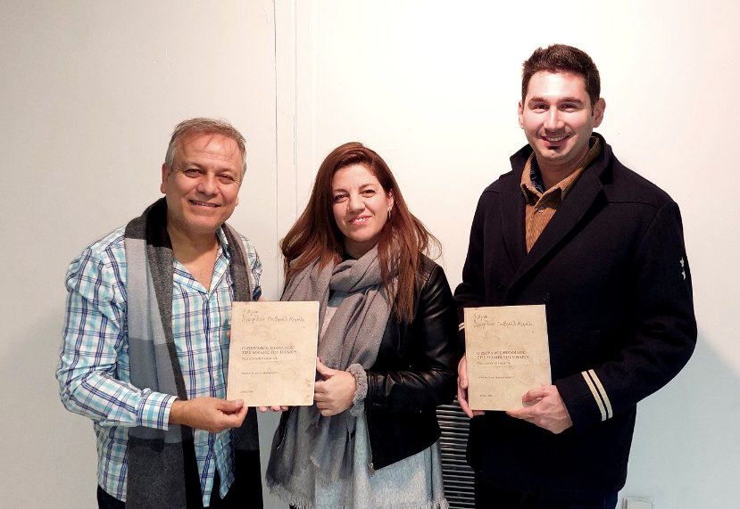 Τα βιβλία πρόσφεραν εκ μέρους του ΠΟΚΕΛ ο γραμματέας Βαγγέλης Ρεμπάπης και ο πρόεδρος Αργύρης Γιουρούκης.