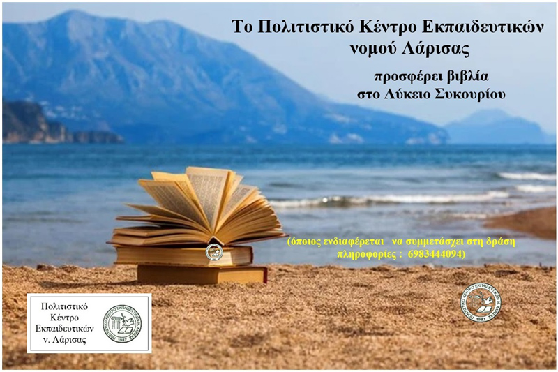 Το Πολιτιστικό Κέντρο Εκπαιδευτικών νομού Λάρισας – ΠΟΚΕΛ θα προσφέρει βιβλία στο Γενικό Λύκειο Συκουρίου, μετά από πρόσκληση που απηύθυνε ο διευθυντής Νίκος Πέτρου και ο Σύλλογος Διδασκόντων, προκειμένου να εμπλουτισθεί η σχολική βιβλιοθήκη με νέους τίτλους βιβλίων και να ενισχυθεί η φιλαναγνωσία του σχολείου.