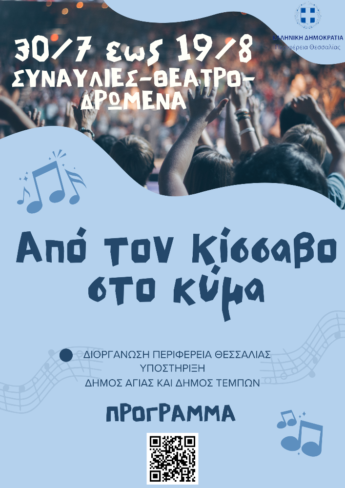 Από τις 30 Ιουλίου έως τις 25 Αυγούστου, το ανανεωμένο φεστιβάλ των παραλίων του Νομού Λάρισας , που ονομάζεται «Από τον Κίσσαβο στο Κύμα», σηματοδοτώντας τη μοναδική γεωγραφία της περιοχής, έρχεται για να ενθουσιάσει τους λάτρεις της μουσικής, του θεάτρου και της ψυχαγωγίας. Το φεστιβάλ επεκτείνεται από τον επιβλητικό Κίσσαβο μέχρι τις μαγευτικές παραλίες του Νομού Λάρισας, στον Δήμο Τεμπών και Αγιάς.