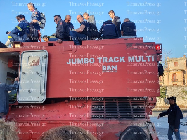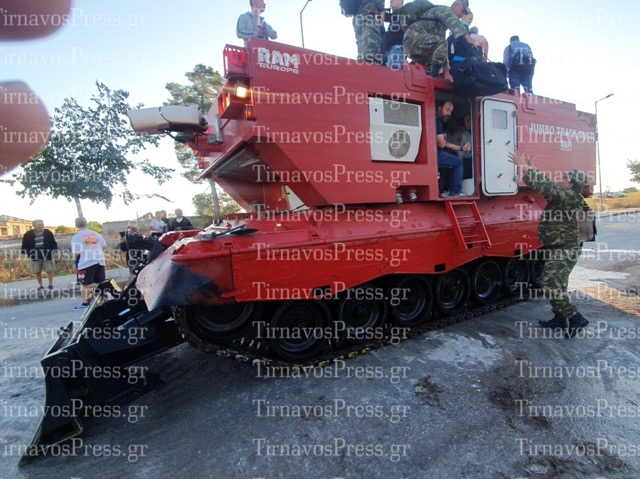 Το θηριώδες πυροσβεστικό και διασωστικό ερπυστριοφόρο όχημα JUMBO TRACK MULTI ήρθε στην Λάρισα και αφού δοκιμάστηκε από την Στρατηγό Διοικητή της 1ης Στρατιάς δόθηκε η άδεια για να εξυπηρετήσει τον κόσμο περνώντας τον από τα ορμητικά νερά του Πηνειού ποταμού στη περιοχή της Γιάννουλης.