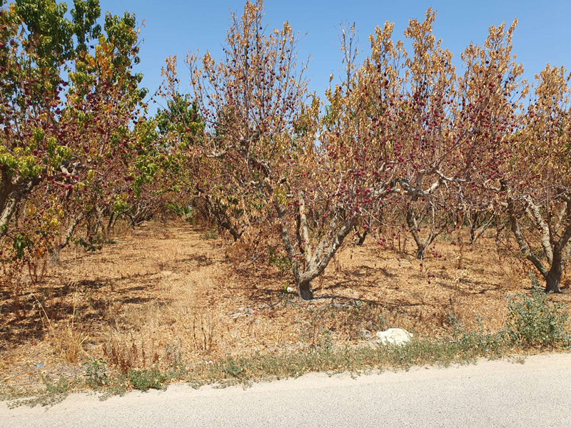Εικόνες απόλυτης καταστροφής με ξερά περιβόλια σε περιοχές ευθύνης του ΤΟΕΒ Μάτι Τυρνάβου στον Αμπελώνα.
