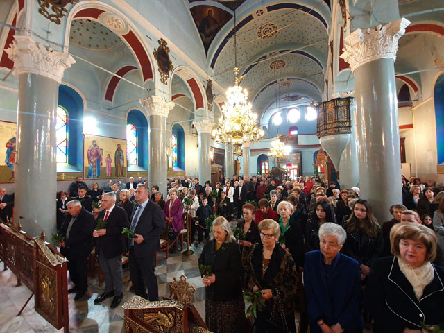 Πλήθος πιστών κατέκλισε τον Ναό ενώ όταν ο Σεβασμιότατος κκ Ιερώνυμος έψαλε τον Ύμνο των Βαΐων όλοι σήκωσαν ψηλά τα βάγια που κρατούσαν.