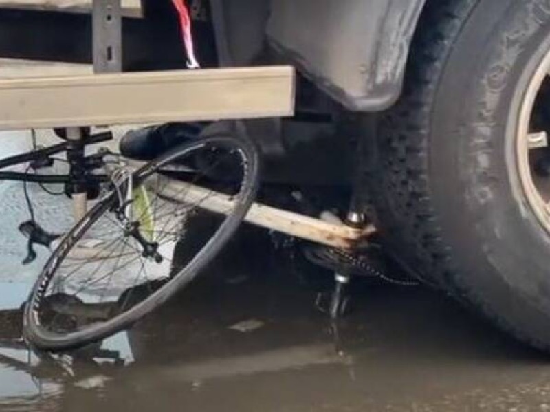 Το κορίτσι, που φορούσε κράνος, σφηνώθηκε με το ποδήλατό της κάτω από τις ρόδες του φορτηγού.