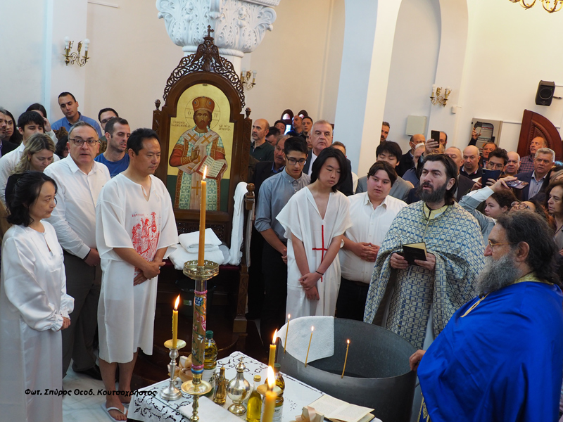 Ο Πρωτοπρεσβύτερος π. Ευάγγελος Παπανικολάου – θεολόγος, ιατρός & κληρικός της Ιεράς Μητροπόλεως Καμερούν – Πατριαρχείο Αλεξανδρείας, την Κυριακή των Βαΐων 28 Απριλίου 2024, στην Γυναικεία Ιερά Μονή Αγίων Νηπίων Οινόης – Αττικής, κατά την διάρκεια της Θείας Λειτουργίας, εβάπτισε τρείς( 3 ) Κινέζους.