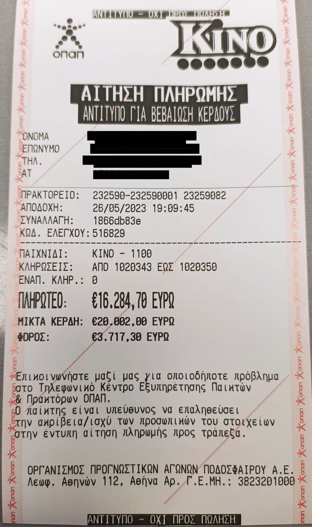 Έπαιξε ένα απλό δελτίο ΚΙΝΟ στο πρακτορείο ΟΠΑΠ του Μεγαλοχωρίου και πήγε… καλό ταμείο. Κέρδισε 20.000 €!!! Σε καλή μεριά…