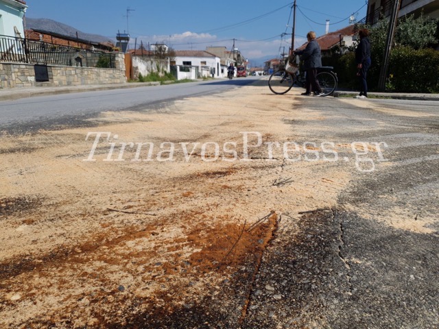 Τροχαίο προκλήθηκε πριν λίγη ώρα στον Τύρναβο, στην οδό Ειρήνης και Στρατηγού Λημπρίτη, λόγω διαρροής πετρελαίου κατά την παράδοση καυσίμων από βυτιοφόρο.