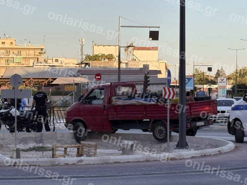 Εκεί, στον νεόδμητο κυκλικό κόμβο, ένα φορτηγάκι – υπό συνθήκες που διερευνά η Τροχαία Λάρισας – εξετράπη της πορείας του με αποτέλεσμα να… ανέβει κυριολεκτικά πάνω στον κυκλικό κόμβο.