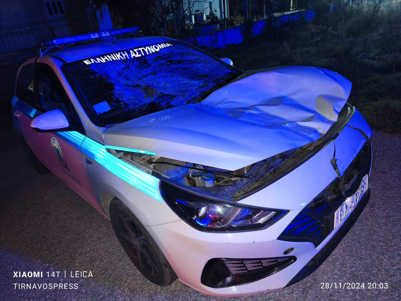 Τροχαίο στον δρόμο Τυρνάβου – Αμπελώνα: Περιπολικό συγκρούστηκε με άλογο – Τραυματίστηκε αστυνομικός