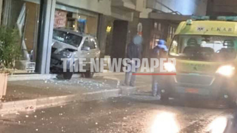 Τροχαίο στον Βόλο – Τζιπ μεγάλου κυβισμού «καρφώθηκε» σε τζαμαρία καταστήματος