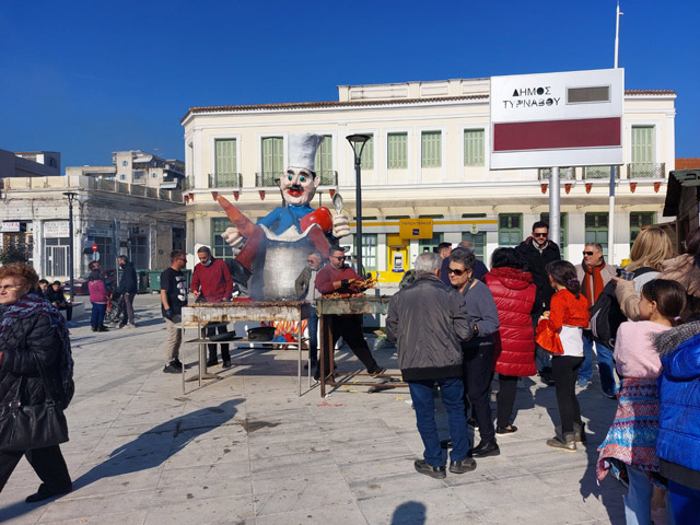 Τσικνοπέμπτη 2023 και ο Τύρναβος τσίκνισε στο κέντρο της πόλης. Από νωρίς το μεσημέρι άνθρωποι κάθε ηλικίας γέμισαν την πλατεία και τα μαγαζιά του Τυρνάβου για να γιορτάσουν κάτω από τον ήλιο την Τσικνοπέμπτη.