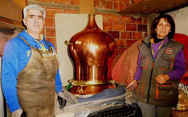τη σύζυγό του κ. Κυριακή κατασκευάζουν από χαλκό άμβυκες σε μεγέθη που ο κάθε αμβυκούχος επιθυμεί.. Η «Ε» βρέθηκε στο χώρο και