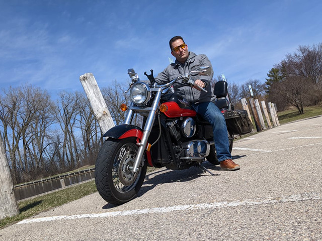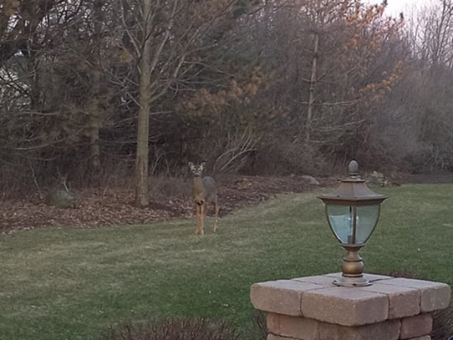 Παρέα με άγρια ελάφια που βρίσκονται παντού, καβαλώντας μια Harley, απολαμβάνοντας την περιοχή των μεγάλων λιμνών.