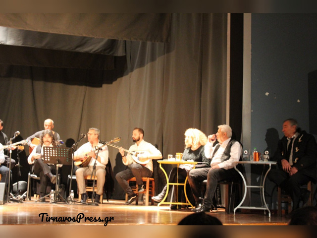 Στο κατάμεστο Δημοτικό Θέατρο οι Τυρναβίτες καλλιτέχνες ταξίδεψαν το κοινό σε άλλες εποχές και καταχειροκροτήθηκαν. Ενδιάμεσα διαδραματίστηκαν και σκετσάκια τα οποία παρέπεμπαν σε εκείνες τις όμορφες εποχές του ρεμπετάδικου και χάρισαν στιγμές συγκίνησης αλλά και γέλιου.