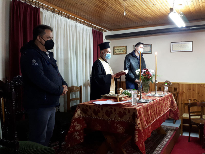 Στο Πνευματικό Κέντρο της Ενορίας του Αγίου Ιωάννη Τυρνάβου τελέστηκε ο αγιασμός για το διδακτικό έτος 2021-2022 από τον πάτερ Γεώργιο με ψάλτες δεξιά του και αριστερά του τον Διευθυντή της Σχολής Λάρισας καθηγητή κ Μαυρομάτη Ιωάννη και τον γραμματέα καθηγητή κ Χρήστο Οικονόμου