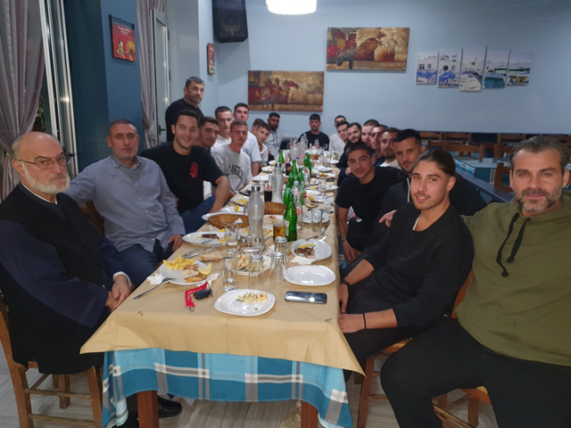 Μετά την ευλογία του ιερέα και την προπόνηση όλη η ομάδα παρακάθησε σε γεύμα στο εστιατόριο Αστόρια προσφορά του προέδρου κ. Σαλτζίδη. Εκεί βρέθηκε και η Λεάνα Γενικός αρχηγός της ομάδας.