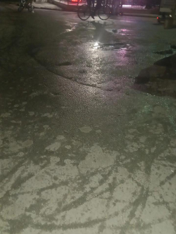 Πολίτες ενημέρωσαν τον Δήμο Τυρνάβου που έσπευσε στο σημείο και σκόρπισε πριονίδι. Οι οδηγοί πρέπει να διέρχονται με προσοχή.