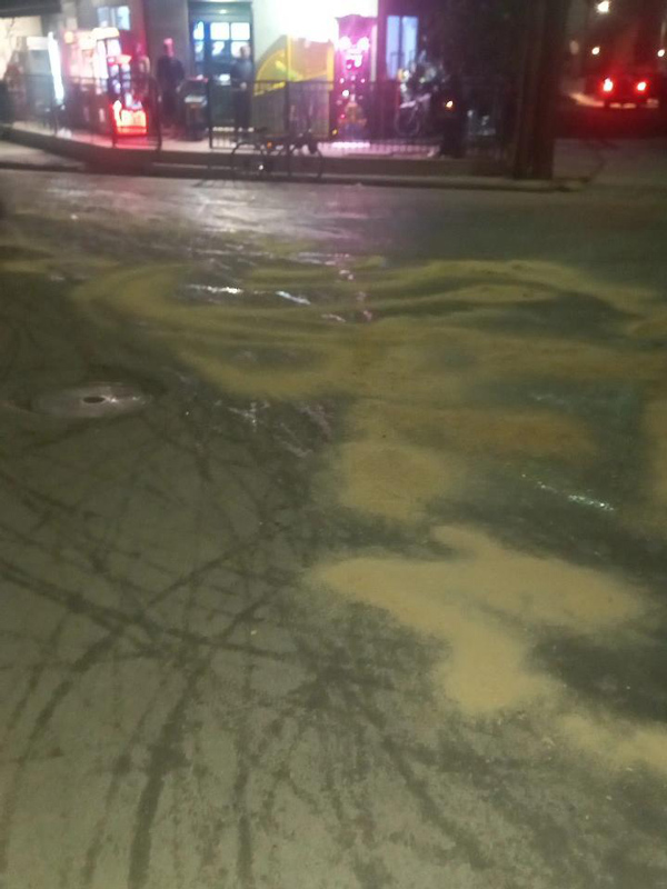 Μεγάλη ποσότητα λαδιού έπεσε στο οδόστρωμα στην οδό Θησέως 6, από άγνωστο προς το παρόν λόγο.