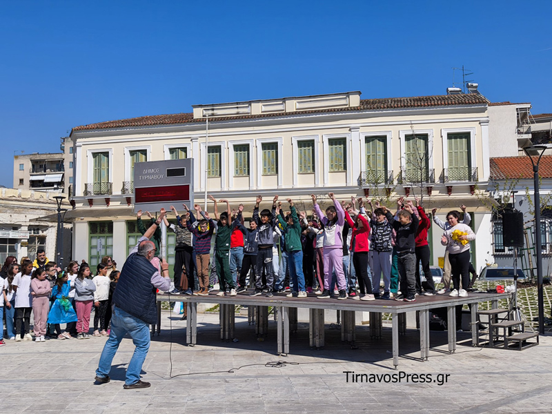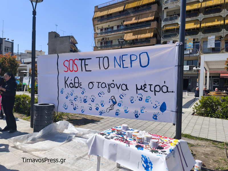 Με τραγούδια, χορό και χαρούμενες παιδικές φωνές, γιορτάστηκε στον Τύρναβο η Παγκόσμια Ημέρα Νερού, σε μια εκδήλωση που διοργάνωσε ο Δήμος Τυρνάβου σε συνεργασία με τη Δ.Ε.Υ.Α. Τυρνάβου. Η δράση, με τίτλο «Νερό: Πηγή Ζωής, Ευθύνη Όλων», πραγματοποιήθηκε το πρωί της 20ης Μαρτίου 2025 στην Κεντρική Πλατεία Τυρνάβου, συγκεντρώνοντας μαθητές από σχολικές μονάδες της περιοχής.