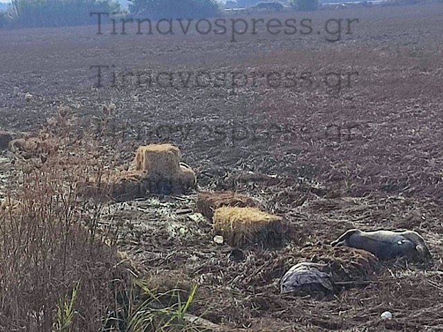 Όπως μπορείτε να δείτε στις αποκλειστικές φωτογραφίες του TirnavosPress.gr τα ζώα κείτονται νεκρά μέσα στα χωράφια και στους δρόμους, ενώ έντονη είναι η δυσοσμία στην περιοχή και αυτό κρούει τον κινδύνου.
