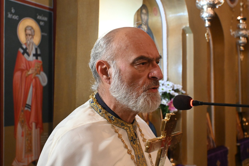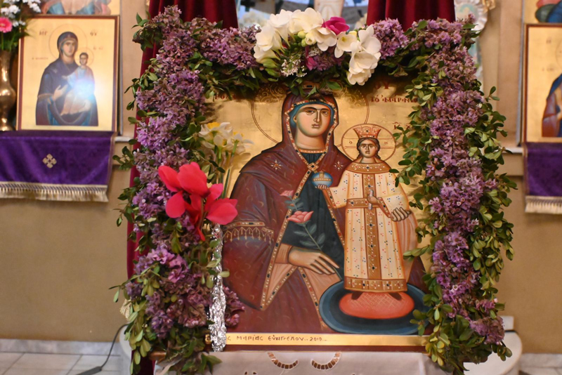 Η ακολουθία τελέστηκε από τον εφημέριο και προϊστάμενο του Ναού, π. Γεώργιο Παπαϊωάννου, ο οποίος με τη γλυκύτητα του λόγου του και τη βαθειά του πίστη μετέφερε το μήνυμα της Παναγίας ως μητέρας όλων των Χριστιανών.
