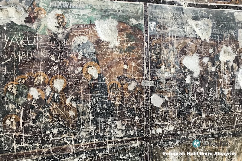 Σύμφωνα με τον συντάκτη του κειμένου Erman Ertuğrul έχουν σβηστεί ή έχουν γραφτεί ονόματα επάνω σε όλα τα πρόσωπα των τοιχογραφιών, εκτός από όσες βρίσκονται στην οροφή και δεν μπορούσαν να τα φτάσουν οι βάνδαλοι. Τις καταστροφές είδαν και αποτύπωσαν επισκέπτες από τις 28 Ιουλίου και μετά οπότε και άνοιξε ξανά η Μονή ως μουσείο, (ήταν κλειστή πέντε χρόνια για αναστηλώσεις και συντηρήσεις). Γενικά, οι αγιογραφίες δεν βρίσκονται και στην καλύτερη κατάσταση, λόγω του ότι δεν συντηρούνται κανονικά, αλλά στην προκείμενη περίπτωση είναι φανερό δια γυμνού οφθαλμού πως πρόκειται για εκτεταμένους, θρασύτατους βανδαλισμούς.