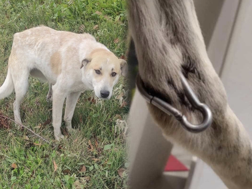 Ένα περιστατικό που προκαλεί θλίψη και αγανάκτηση έρχεται από τον Τύρναβο, όπου ένα αδέσποτο σκυλί όπως αναφέρει η μάρτυρας βρέθηκε σε άθλια κατάσταση, με ένα μεταλλικό αντικείμενο στερεωμένο στο πόδι του.