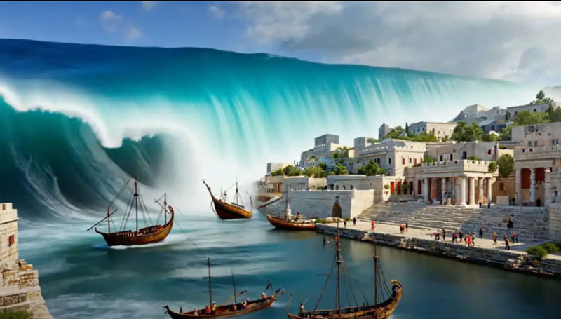 Η ηφαιστειακή τέφρα του ηφαιστείου της Σαντορίνης λέγεται ότι σκέπασε τη μινωική πόλη στο Ακρωτήρι της Θήρας, κάλυψε τον ουρανό του Αιγαίου και έφτασε μέχρι την Κρήτη. Η έκρηξη προκάλεσε επίσης ένα τεράστιο τσουνάμι, με κύματα ύψους άνω των 100 μέτρων να πλήττουν τις ακτές της Κρήτης κι άλλων νησιών του Αιγαίου. Το τσουνάμι προκάλεσε τεράστιες καταστροφές, ενώ η τέφρα που έπεσε στη θάλασσα μόλυνε το νερό και σκότωσε τη θαλάσσια ζωή.