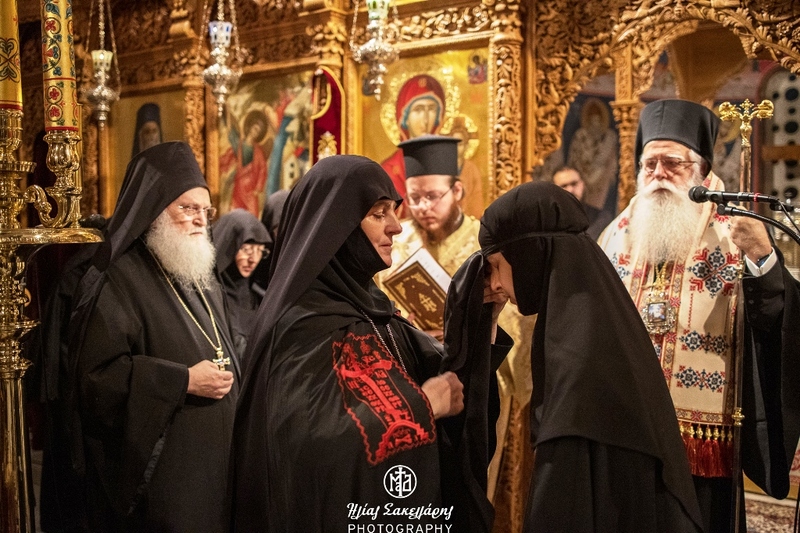 Κατόπιν, ο Γέροντας Εφραίμ, ανταποκρινόμενος στην παρότρυνση του Σεβασμιωτάτου, έδωσε πατρικές συμβουλές στις νεόκουρες μοναχές τονίζοντας ότι «η σημερινή χαρά είναι ένα γεγονός που αφορά όλη την τοπική εκκλησία, διότι δύο αδελφές εισέρχονται επισήμως εις τον πραγματικό κόσμο, αυτό είναι μεγάλη ευλογία, διότι οι δύο αδελφές δέχθηκαν το σχέδιο του Χριστού, καθώς για να γίνει κάποιος μοναχός πρέπει να δεχθεί το σημείο του Υιού του Θεού, σε εμάς τους μοναχούς εισέρχεται μία δύναμις μέσα μας δίνοντας μας τη διάθεση να αγαπούμε τον Θεόν, απορρίπτοντας την κοσμική ζωή. Εξερχόμεθα επί της Γης με τις εμπειρίες μας και πραγματικά κοινωνούμε με τον Χριστό τον Ηγαπημένο. Ο μοναχός θέλει μεγάλη δύναμη καθώς το να φύγεις από το κόσμο δεν είναι απλό πράγμα.. Φεύγοντας από τον γάμο, ο μοναχός ζει μία ιδιαίτερη ζωή, αφιερωμένη στον Θεό.