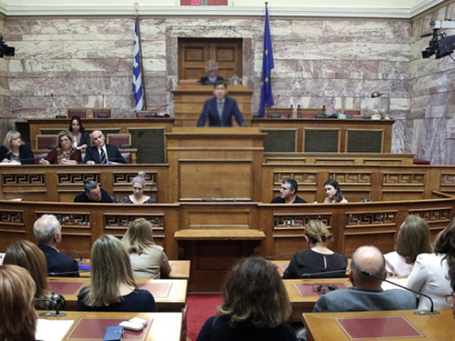 Βουλή: Της έπεσε σημαία στο κεφάλι την ώρα της συζήτησης σε επιτροπή για τα εργατικά ατυχήματα