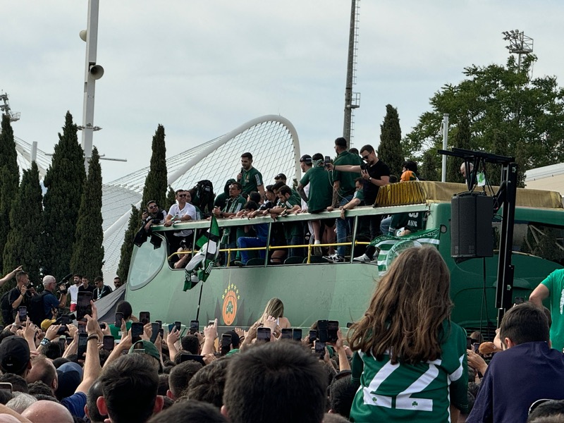 Όπως είναι λογικό, η κατάσταση αυτή δημιούργησε μεγάλη καθυστέρηση, με τον κόσμο να αυξάνεται διαρκώς στο ΟΑΚΑ και να αναμένει την άφιξη του πούλμαν, δημιουργώντας καταπληκτική ατμόσφαιρα με συνθήματα και μπόλικο τραγούδι. Η ΚΑΕ Παναθηναϊκός AKTOR είχε δημιουργήσει έναν ειδικό περιφραγμένο χώρο, μπροστά από τον οποίο θα μπορούσε να περάσει με ασφάλεια η αποστολή, έτσι ώστε να αποθεωθεί.