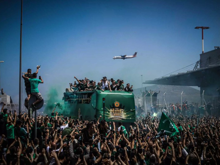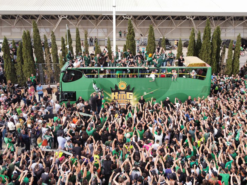 Πολλές χιλιάδες οπαδοί των «πράσινων» που είχαν κατακλύσει από νωρίς το «Ελ. Βενιζέλος» δημιούργησαν ατμόσφαιρα… Λεωφόρου στο αεροδρόμιο. Αφότου προσγειώθηκε η αποστολή περί τις 2 το μεσημέρι και επιβιβάστηκε στο ανοιχτό λεωφορείο με την επιγραφή «The king is back», έγινε χαμός στην εμφάνισή της στην πύλη 7.
