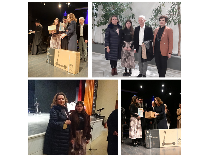 Ιδιαίτερη τιμή για το σχολείο μας η διάκριση της μαθήτριας ΚΥΡΙΤΣΗ ΔΕΣΠΟΙΝΑΣ που ξεχώρισε για το κείμενο ΕΚΘΕΣΗΣ που υπέβαλλε και κέρδισε το 2ο ΒΡΑΒΕΙΟ ( ένα ηλεκτρικό πατίνι)