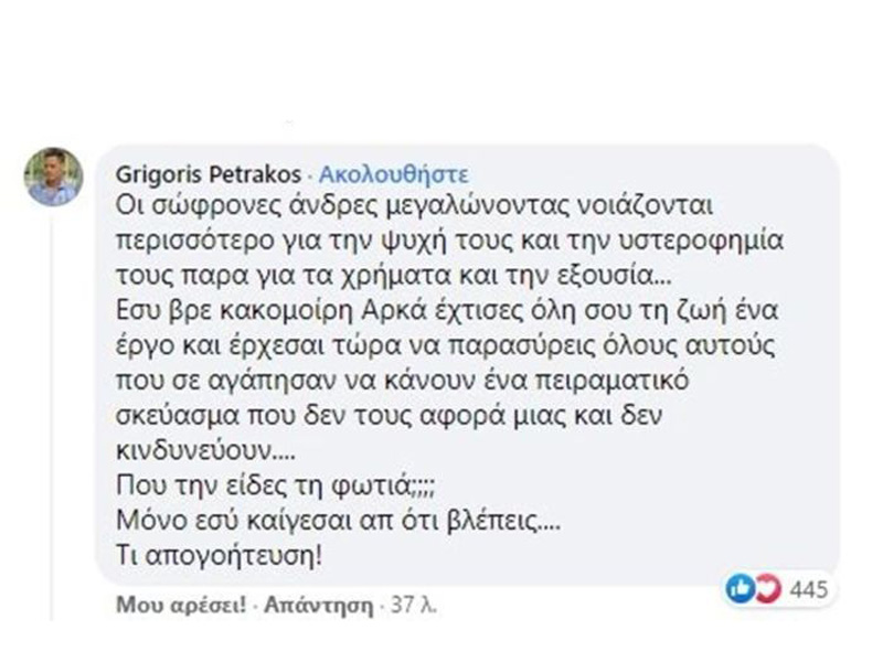 «Βρε κακομοίρη..»: Ψεκασμένη επίθεση Πετράκου στον Αρκά για το σκίτσο με το εμβόλιο