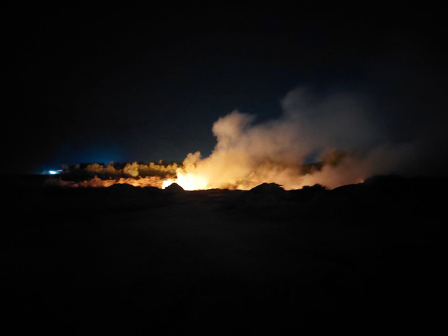 Είχε σκαφτεί μια μεγάλή γούβα, μέσα πετάχτηκαν πάρα πολλά μπάζα πλαστικά και κάθε λογής σκουπίδια. Η φωτιά καίει μέσα δεν μπορεί να ξεφύγει αλλά ούτε και να σβήσει από την στιγμή που το όχημα δεν μπορεί να προσεγγίσει την περιοχή.