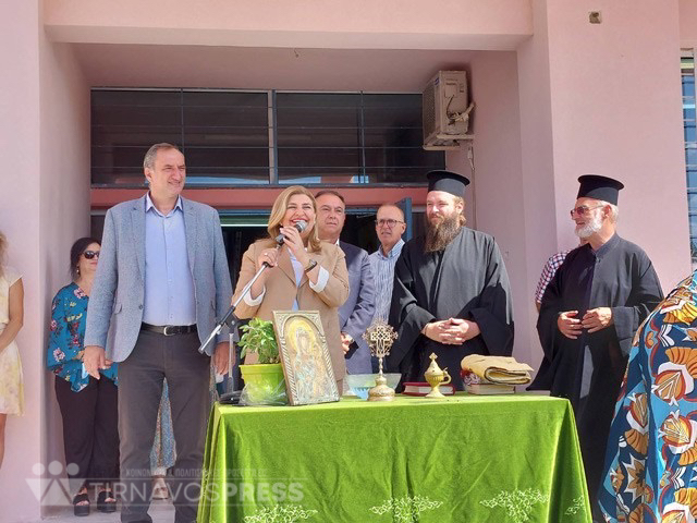 Παρόντες οι Βουλευτές Λάρισας Χρήστος Κέλλας και Ευαγγελία Λιακούλη και ο Δήμαρχος Τυρνάβου Ιωάννης Κόκουρας. Η κ. Λιακούλη ευχήθηκε Καλή χρονιά, τόνισε ότι το σχολείο έχει κινήσει το ενδιαφέρον με τις επιτυχίες του και την έντονη δραστηριότητα του σε δράσεις ενημέρωσης για το Σύνταγμα, την Ευρώπη κ.α. ενώ εξήγησε πως ξεκινά άλλη μια δραστήρια χρονιά γεμάτη γνώσεις. Τέλος ζήτησε από τα παιδιά να υπάρχει ένα κλίμα συζήτησης και σεβασμού προς τα προβλήματα που όλοι αντιμετωπίζουμε.