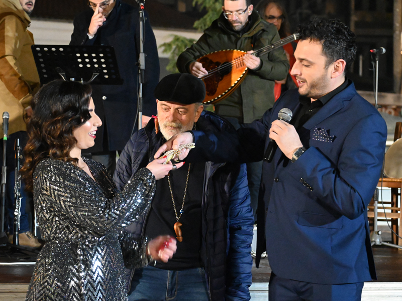Η Βασίλισσα Ανθή Ζορμπά εντυπωσιακή όπως πάντα παρέλαβε από τον Δήμαρχο Τυρνάβου το κλειδί της πόλης. Με την σειρά της ευχήθηκε καλή διασκέδαση, καλές Απόκριες και με ενθουσιασμό κάλεσε όλους τους επισκέπτες μας να γίνουν ένα με το καρναβάλι και τον Τύρναβο.