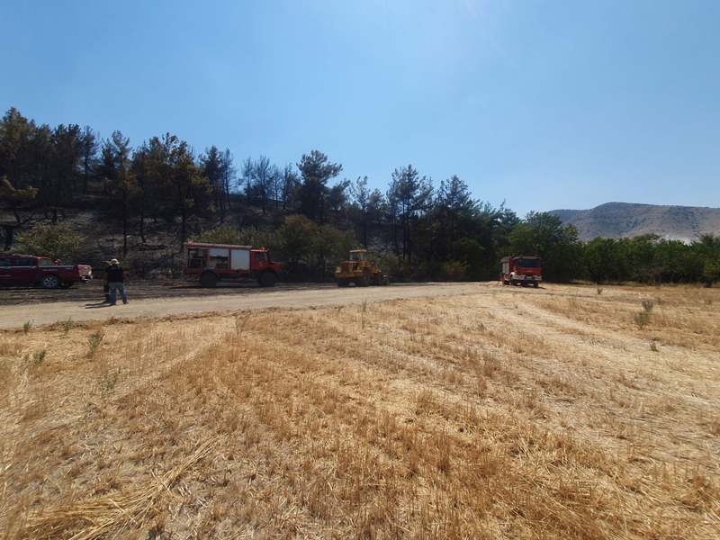 Η φωτιά έκαψε μεγάλη έκταση από υπολείμματα καλλιεργειών, δέντρα και χαμηλή βλάστηση ενώ παρά τον δυνατό αέρα δεν απείλησε τις επιχειρήσεις και το εξωκλήσι της Αγίας Άννας που βρίσκεται στην περιοχή.