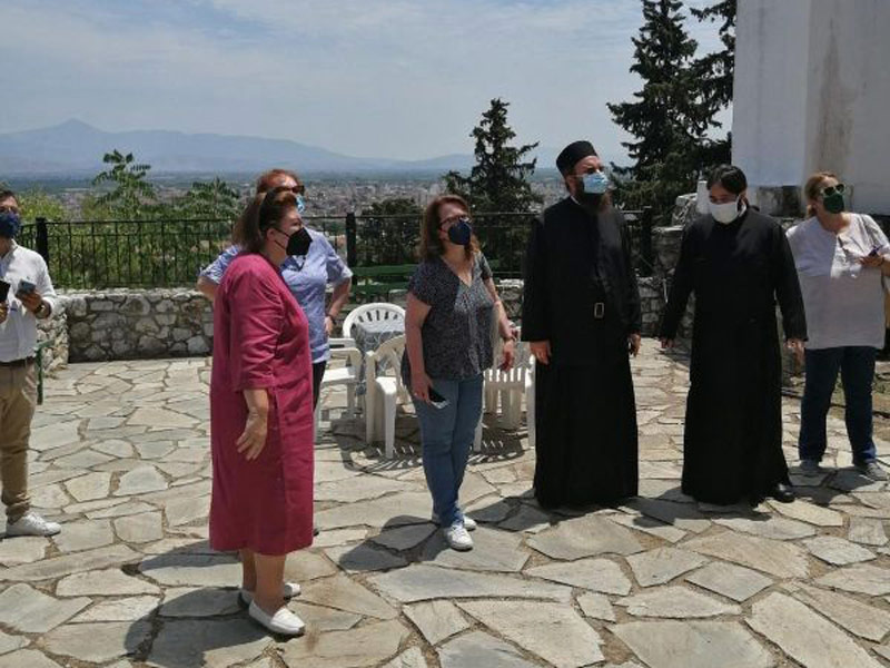 Την κ. Μενδώνη συνοδεύει από το πρωί εκ μέρους του Σεβασμιωτάτου Μητροπολίτου Λαρίσης και Τυρνάβου κ. Ιερωνύμου, ο Πρωτοσύγκελλος π. Ιγνάτιος Μουρτζανός και ο Αρχιερατικός Επίτροπος Τυρνάβου π. Γεώργιος Παπαϊωάννου.