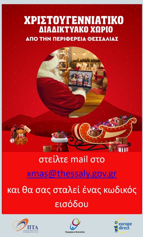 Μια πρωτότυπη ιδέα, που αξιοποιεί τις δυνατότητες της τεχνολογίας και του διαδικτύου, προσαρμοσμένη στις συνθήκες που επιβάλλει η υγειονομική κρίση στηρίζει η Περιφέρεια Θεσσαλίας σε συνεργασία με το Περιφερειακό Ταμείο Ανάπτυξης και το Europe Direct δημιουργώντας το Χριστουγεννιάτικο Διαδικτυακό Χωριό της Περιφέρειας Θεσσαλίας.